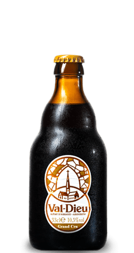 Val-Dieu Grand Cru es una cerveza belga de abadía de estilo Quadrupel, de carácter complejo y potente al paladar. Se elabora con lúpulo, agua, levadura y malta de cebada muy tostada que le otorga acidez al conjunto. No está filtrada ni pasteurizada y se realiza una segunda fermentación en botella. El resultado es una cerveza oscura belga con notas dulces, a café y a nueces.